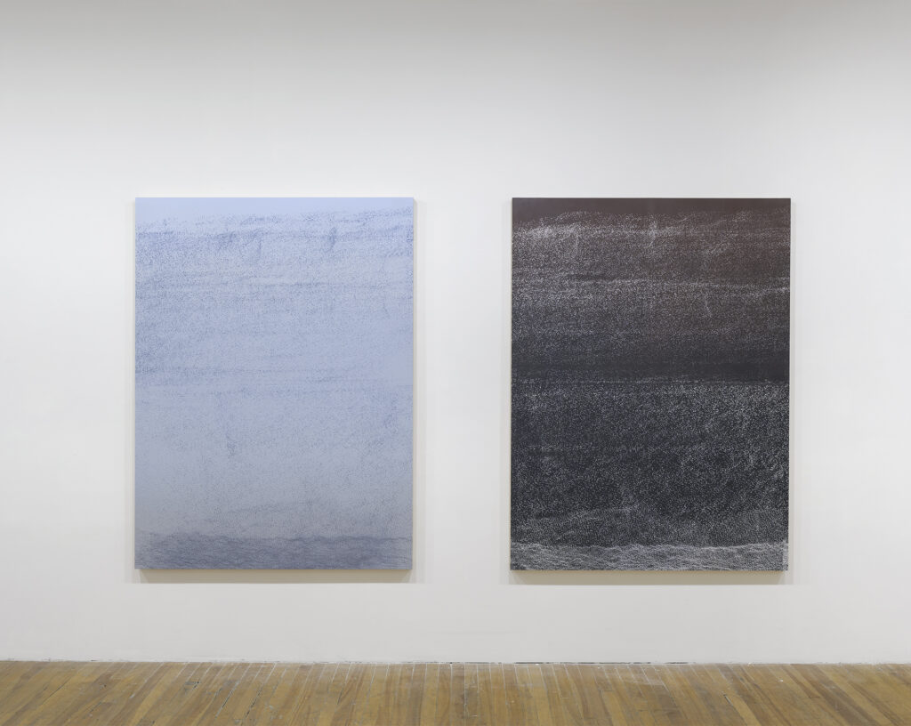 I thus produced around ten 2D projections from imprecise areas, blurs, often near the ground at the edge of objects or the site itself (fence, machinery, rubbish, tufts of grass). By referring to the watercolors of Albrecht Durer, to the engravings of Hercules Seaghers and to the drawings of Seurat, I realized that these artworks presented subjects of painting as much as invisible interactions. In the studio, I sought to retranslate each subject using both manual processes and laser numerical control tools knowing that the pairing of these processes would render hybrid artwork. I was therefore motivated as much by the errors of these tools as by the imprecision of painting itself. In the end, it was the dust, holes and burns that ended up superimposing themselves on the event, outlining something like a third nature.