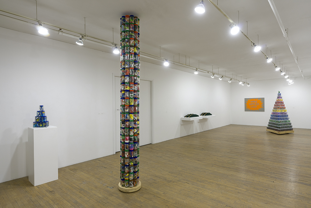 Plastic represents the age where material abundance and petroleum go hand in hand. It is the ultimate of all disposable matter and yet, its destructiveness stems from its insidious persistence, an enduring legacy as its value slips toward worthlessness and worse. Maclean’s response has been to transform single-use disposability into artistic forms that speaks to the anti-accomplishments of our civilisation supposedly at its peak. It is a depiction of throw-away culture and the schemes required to keep it rolling. The process behind these works is primarily that of collecting, accumulating, and eventually transforming what is essentially junk, through a long and drawn-out program of storage, sorting and repetitive action.