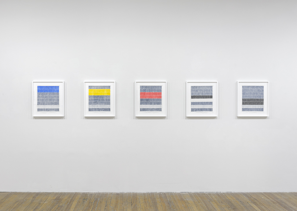 coloured dots in fluid zones circulating between structuring verticals that define the