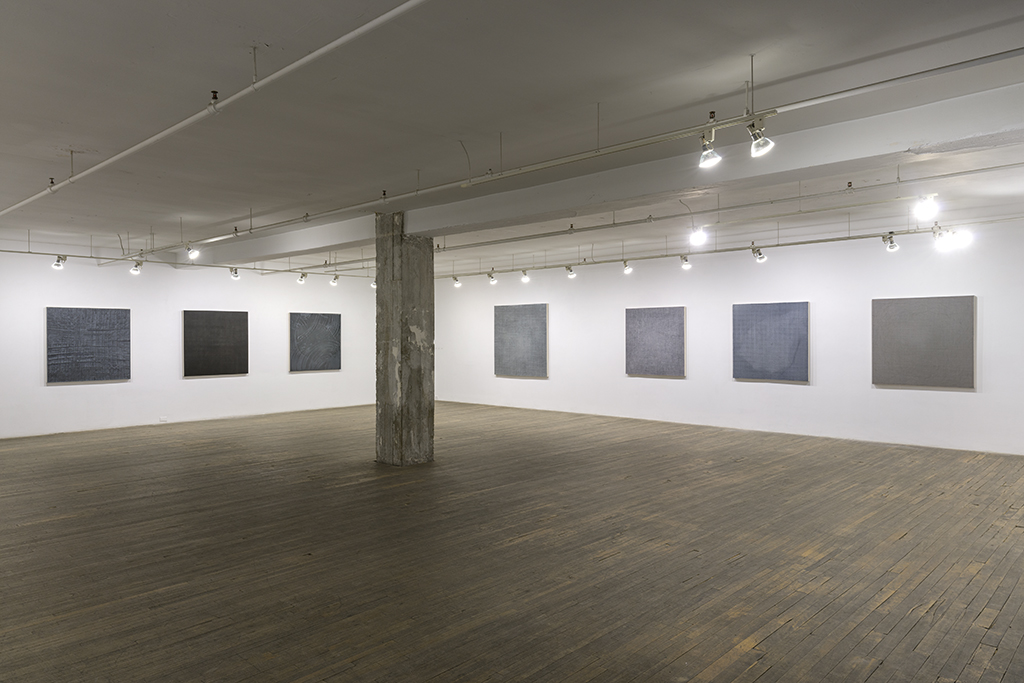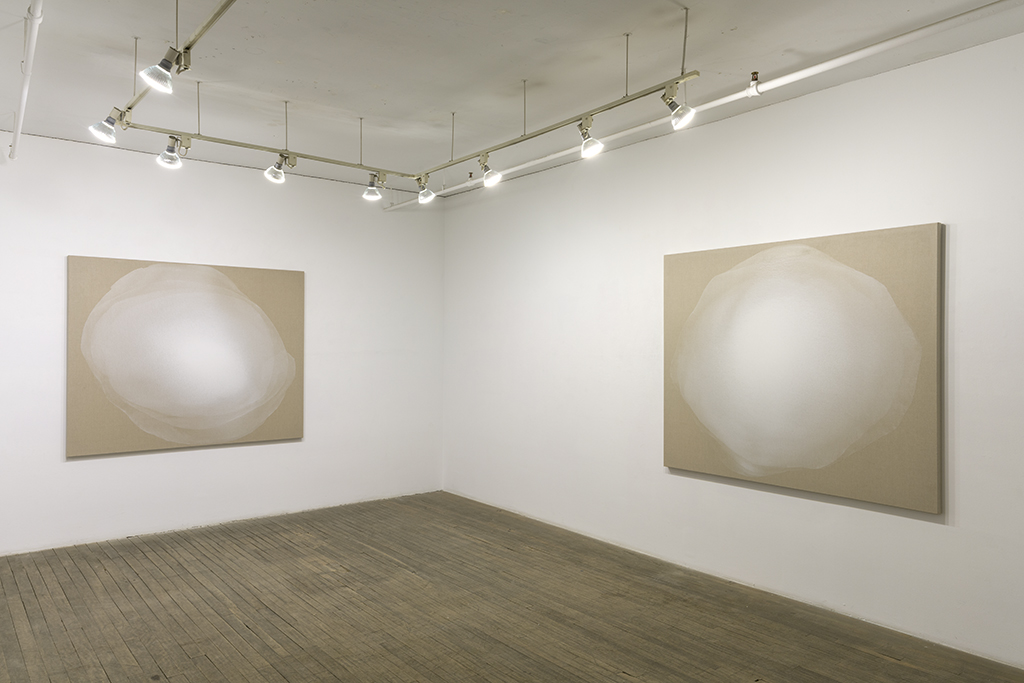 This group of nearly-nothings, with neither edges nor centre, nor hierarchy of surface, this layering of changing intentions and vagueries of process, propose a palimpsest of overlapped time. There are many moments of painting at the heart of each, gestures which cross paths, separate, complete themselves or becoming lost, occasionally are forgotten. It in such a spirit that the present group of works took form. I returned, as is my wont, to certain aspects of my practice to rework them and found myself in a different position to that which I had originally thought. Marguerite Duras who, describing her desire to translate the humidity of the park, and finally remembering it the next day, writes in her notebook: « the humidities of the park ». I like to think that the unforeseen can nourish awareness and understanding, that it can be our loss as well as our arrival. Coming into being despite all that we can do, it often appears as a certain compression of time, space, desire… Thus, I’m more interested in the edges of the image than in the image itself and I search for the conditions allowing its appearance.