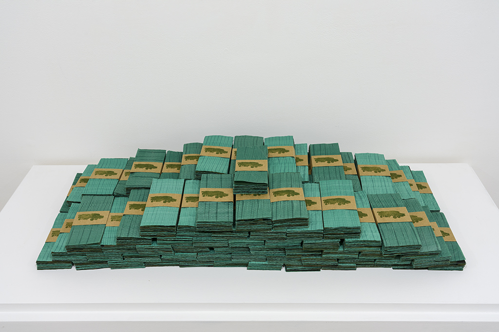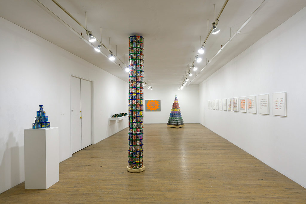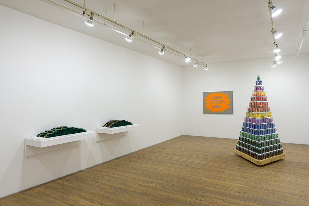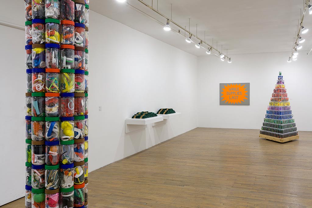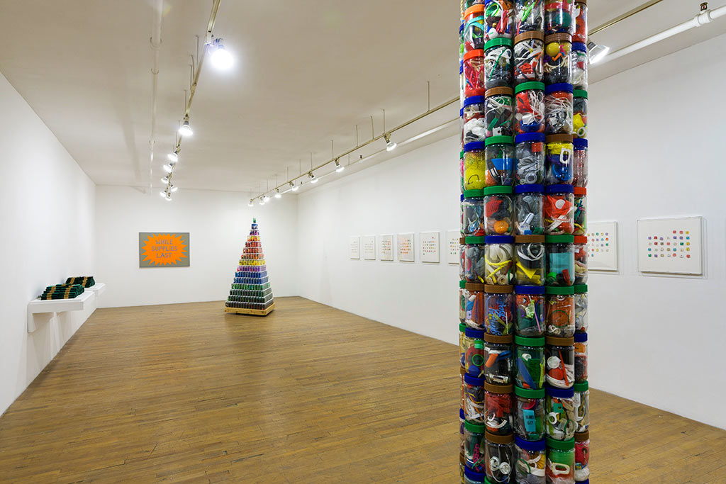 Le plastique représente l’ère durant laquelle abondance matérielle et pétrole vont de pair. C’est le summum de toutes les matières jetables et, pourtant, sa destructivité provient de sa persistance insidieuse, un héritage qui se prolonge alors que sa valeur frôle la nullité, et pire. La réaction de Maclean a été de donner à des usages uniques et donc jetables des formes artistiques qui abordent les anti-réalisations de notre civilisation soi-disant à son apogée. C’est une illustration de la culture du gaspillage et des machinations requises pour qu’elle se perpétue. Le processus derrière ces œuvres est principalement la collecte, l’accumulation et la transformation éventuelle de ce qui était essentiellement de la pacotille, à travers un long et incessant programme d’entreposage, de tri et de gestes répétitifs.