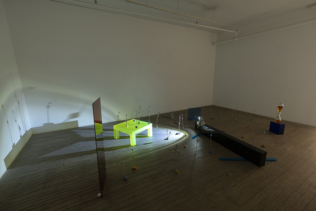 Avec Détection de contours et surfaces délicieuses, Pascal Dufaux livre un recueil d’œuvres qui, par voie d’introspection, induisent diverses formes de renversements. Le travail de Dufauxadhère à la théorie de la neuroplasticité, qui s’exprime par l’adaptabilité du cerveau à créer, défaire ou réorganiser les réseaux et les connexions de neurones. Cette malléabilité physique fait naturellement écho à la plasticité intellectuelle, sociale ou idéologique, et suggère notre capacité à nous défaire des normes acquises pour en réinventer de nouvelles. Elle fait également allusion à la plasticité de la pratique artistique elle-même, comme celle de Dufaux et sa porosité à devenir une pratique collective. Les composantes de l’exposition ont été réalisées dans son atelier de sculpture en parallèle à la recherche plastique qu’il mène de pair avec Sarah Wendt, sa collaboratrice depuis 2015. Performeuse, plasticienne et musicienne, Wendt s’intéresse au mouvement dans l’image et à la rencontre des objets. Cette interpollinisation de leurs langages fait évoluer le travail de Dufauxpour inclure une réflexion picturale incarnée dans des techniques de conception ainsi que dans l’usage de la lumière comme matière sculpturale.