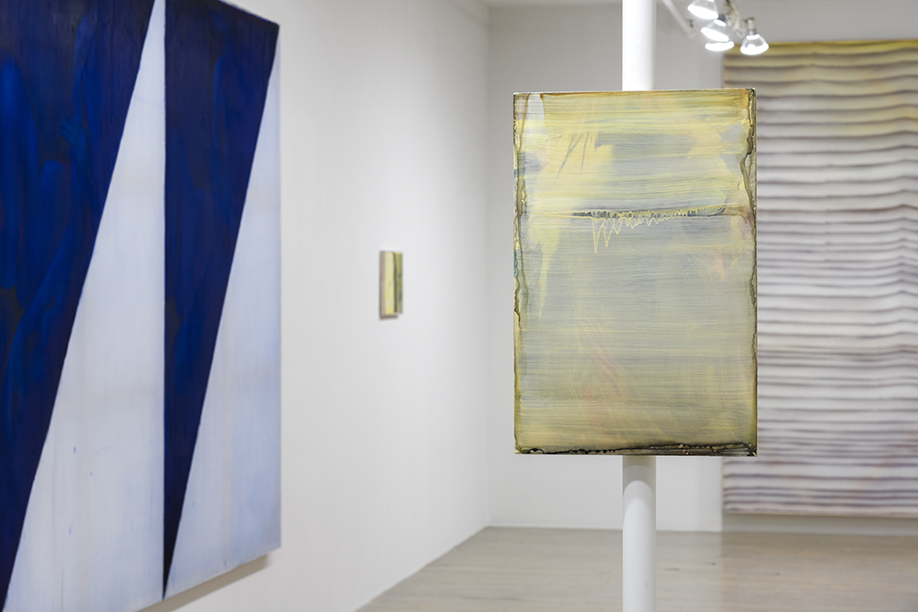 THIRD, c’est cette impossible réunion des dualités. C’est cet espace autre, ce tiers, que la pratique permet de créer. THIRD est tissé de connexions mimétiques qui ne se réduisent pas à la somme des éléments le constituant. C’est un glissement entre une recherche plus formaliste et conceptuelle vers un questionnement qui se veut plus ouvert au profit d’une réactualisation de la pensée. Les jeux de surfaces et de transparence créent des brèches dans l’unité du tableau tout en créant une physicalité plurielle. THIRD, c’est également la mise en relation des tableaux. Renvoyant au concept de la psychanalyse où le tiers devient cet espace qui peut exister entre deux personnes lorsqu’elles sont dans une relation d’agencement, sans être complètement déterminées par l’autre. Une complémentarité qui n’est ni binaire ni linéaire. Ainsi, les propositions picturales de Paul Hardy, dans leur diversité, se déploient dans une constellation où les répétitions ouvrent un ensemble de potentialités à expérimenter.