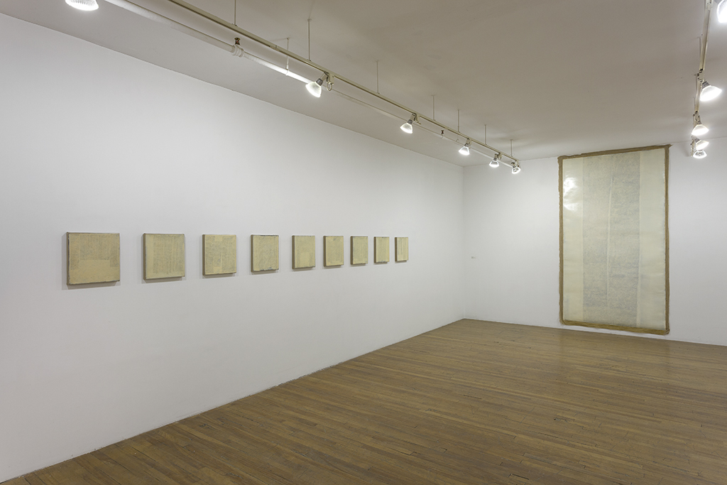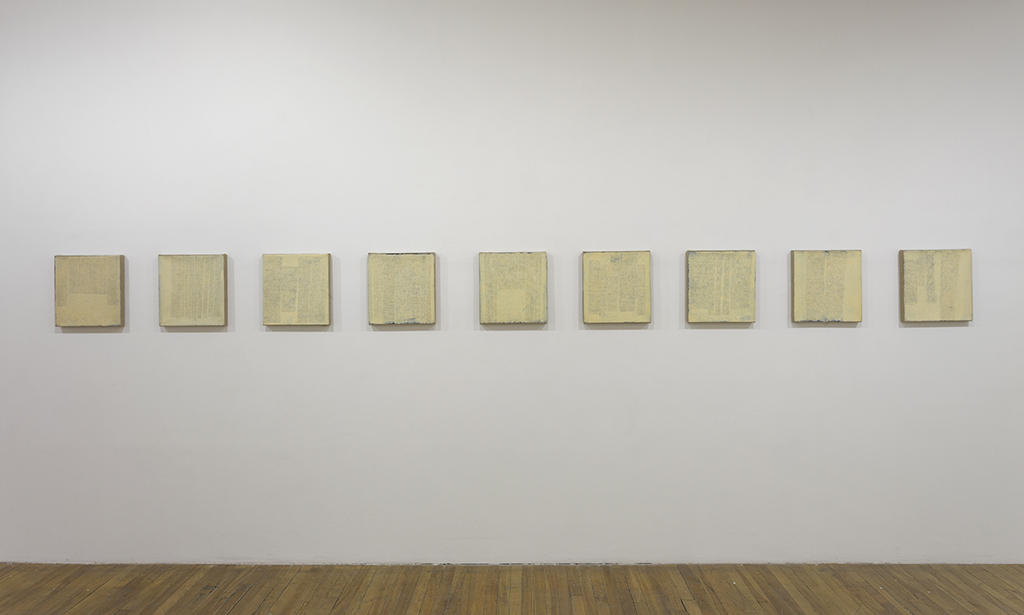 Les œuvres de la série “Pages” de Romany Eveleigh traite peinture et dessin comme formes de l’expression écrite. Chevauchant le champ visuel de leur page, les œuvres empruntent techniques et matériaux aux mondes de l’écrit, de l’imprimé et de la reproduction-série.